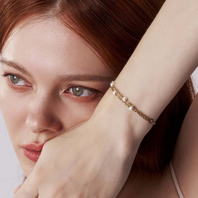 ✅ 經典優雅:精緻金球與純白珍珠交織,為經典手鍊增添迷人的細緻變化。